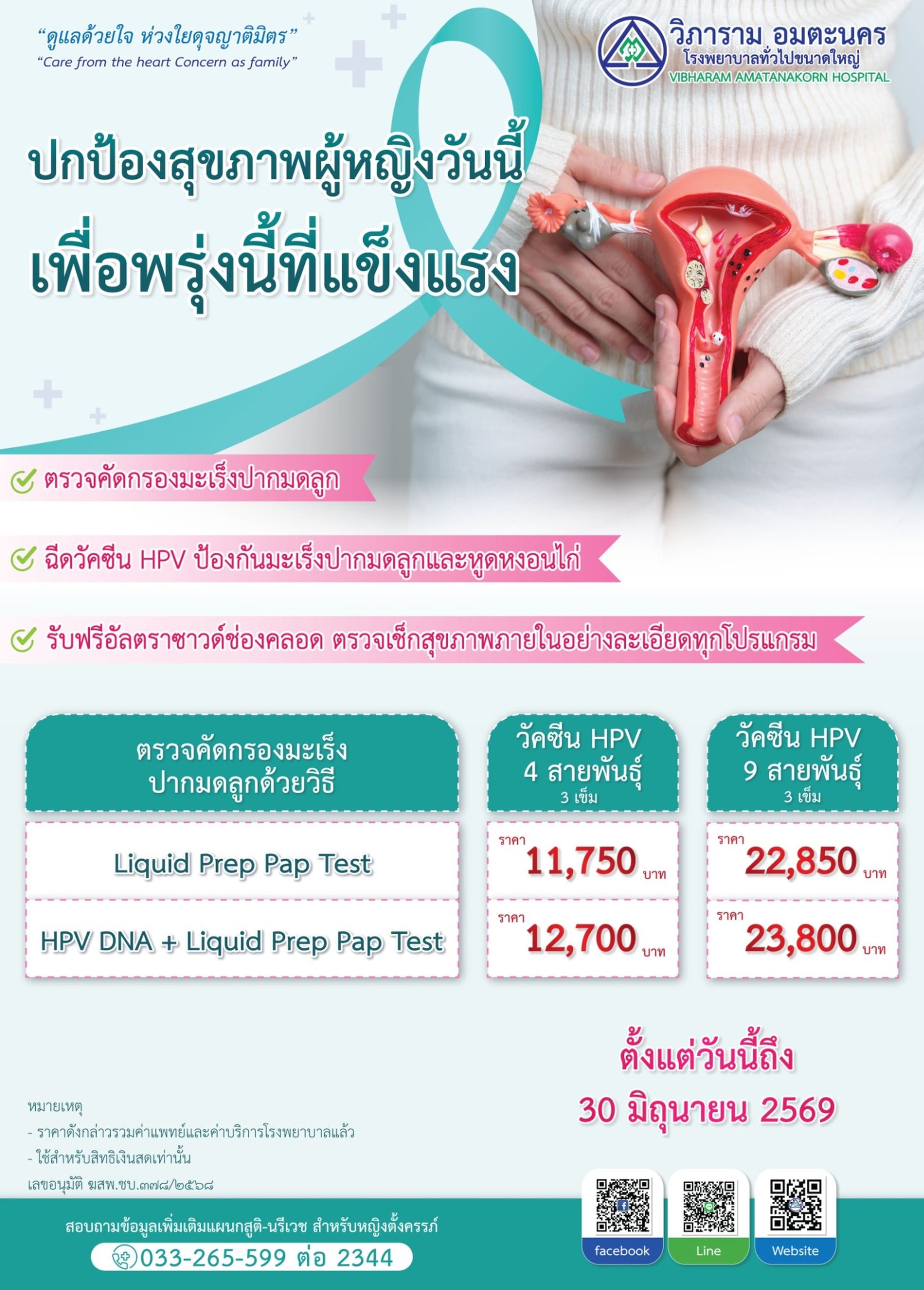 ตรวจคัดกรองมะเร็งปากมดลูก (Liquid Prep Pap Test หรือ HPV DNA) + วัคซีน HPV ป้องกันมะเร็งปากมดลูกและหูดหงอนไก่